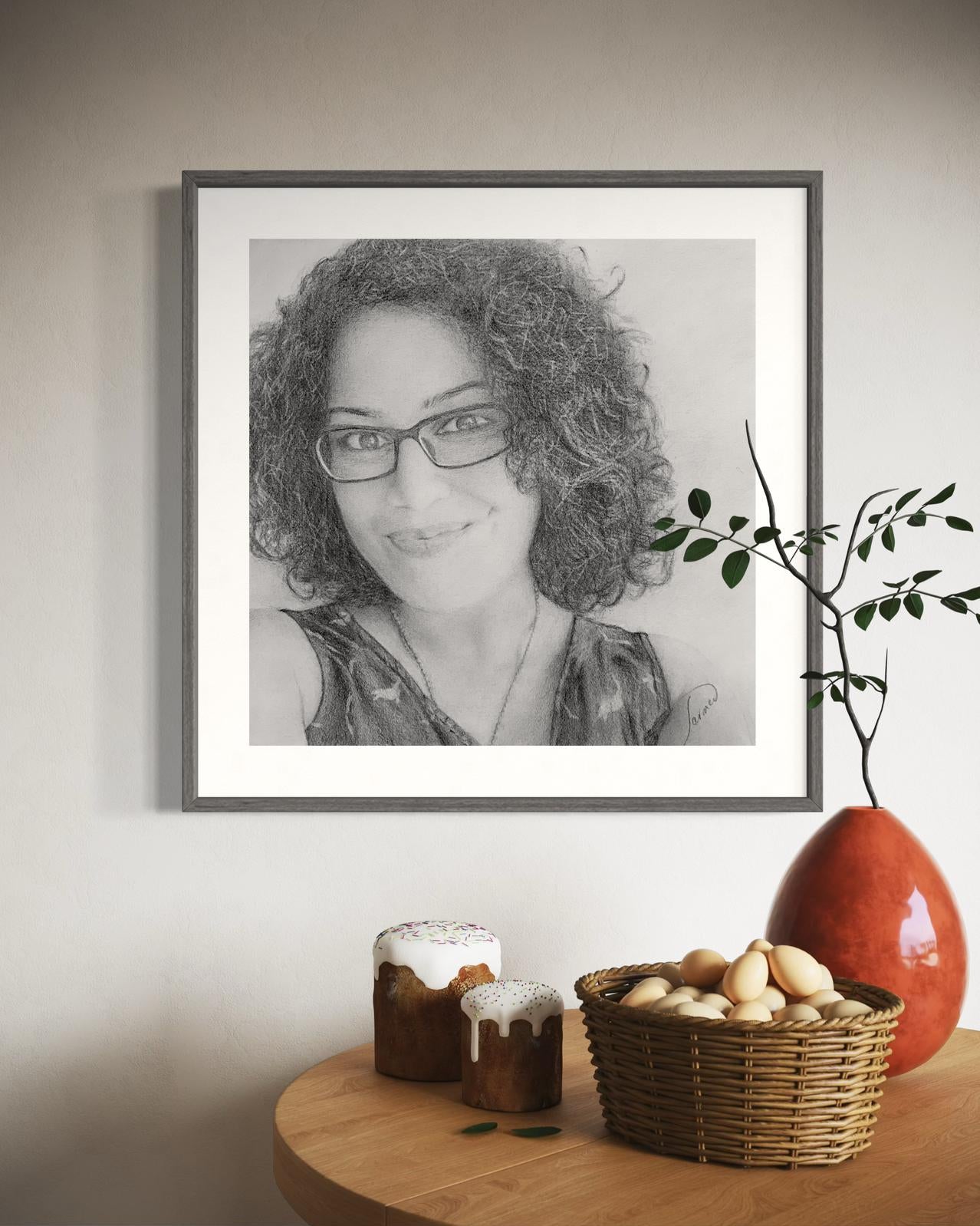 Capture memories with a custom 100% hand-drawn portrait by Sarmed, a Scottish Portrait Award recognised artist in classic realism, using graphite or charcoal on archival paper.