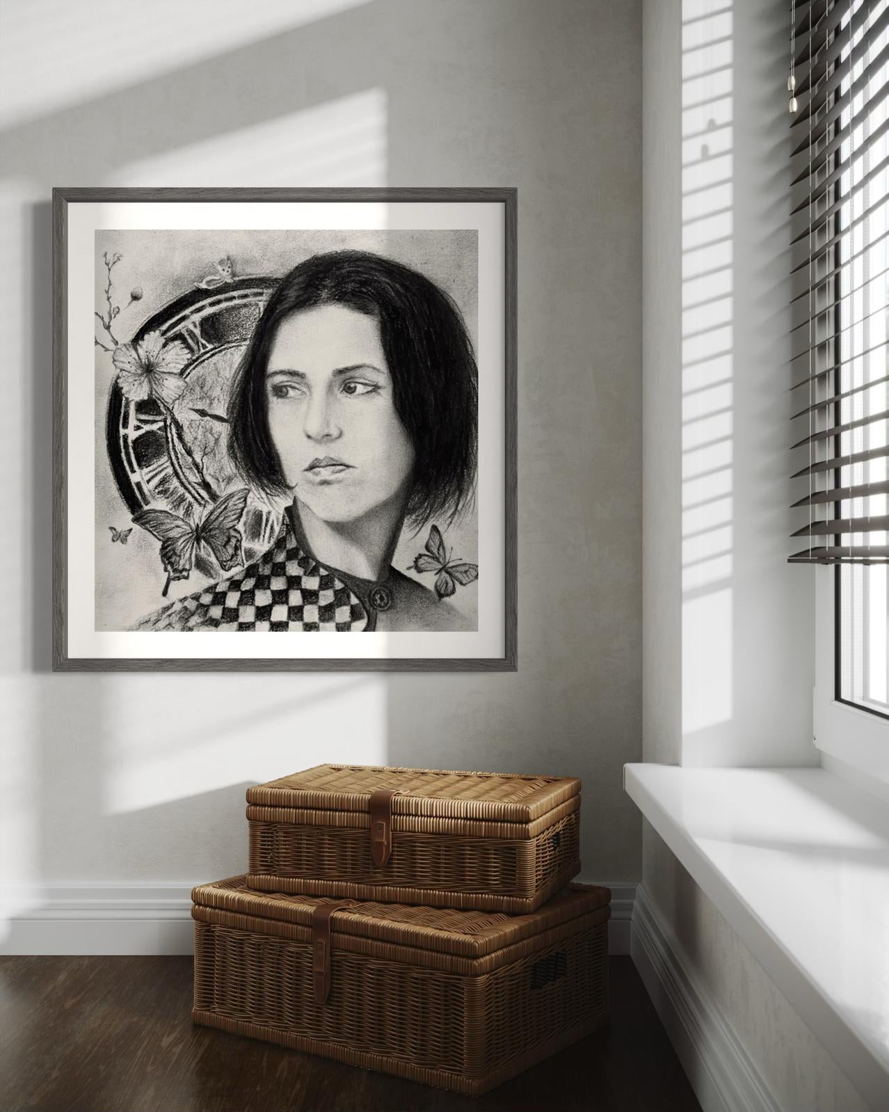 It’s the most beautiful and perfect portrait in the whole universe!!! I love it so so much! The clock going backwards (and it was specially nice that it has Roman numbers), the checkered pattern, the butterflies, the cherry blossoms, my Cristal cat!!! And thank you for making it look like me (but younger and more beautiful ☺️)