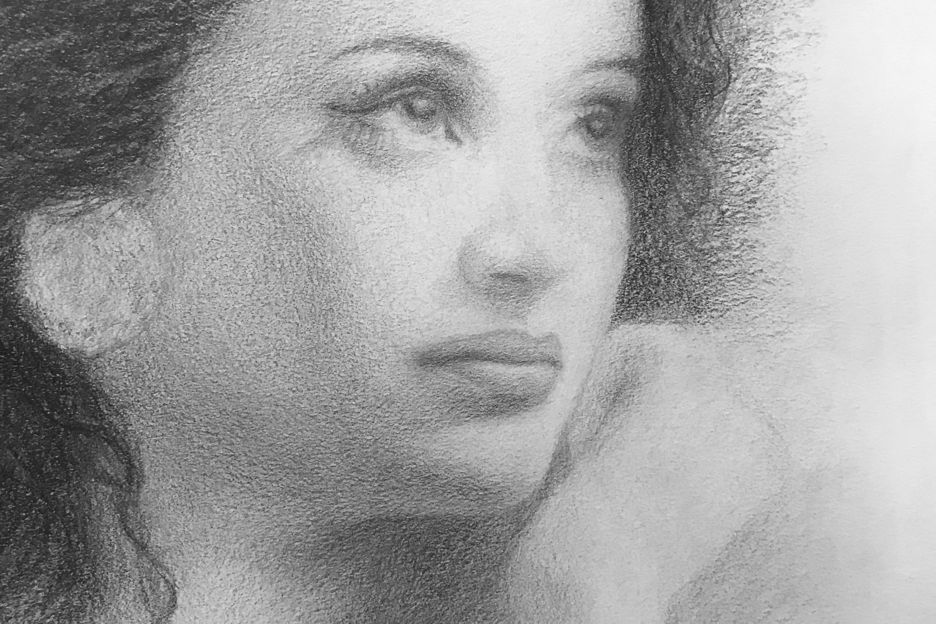 Create a fully finished portrait in graphite or charcoal from scratch using photograph.