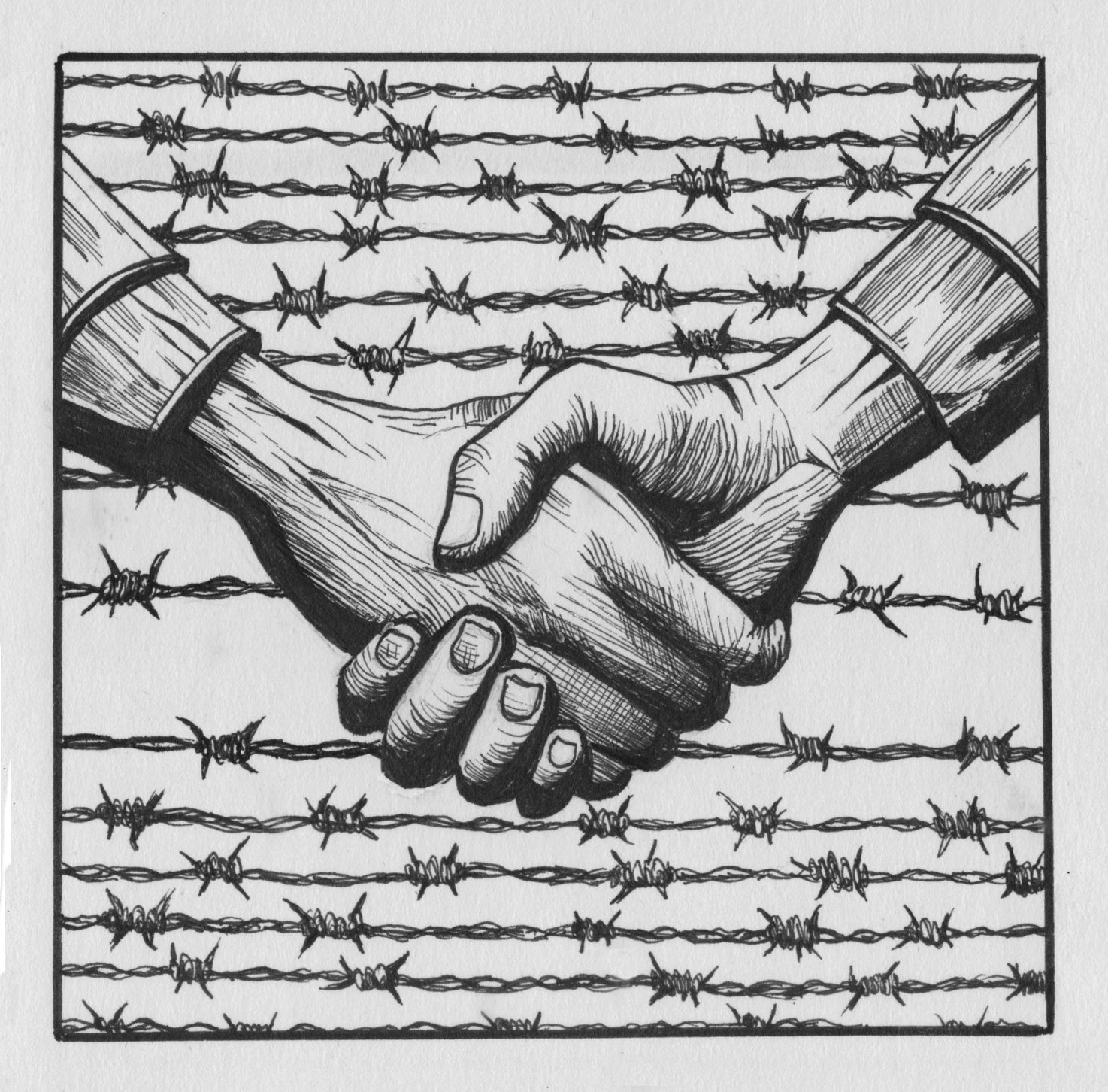 Each piece in the series is rooted in the artist’s original hand-drawn ink image and explores a different facet of tension, reconciliation, and return. Together, they form a complete visual treaty, eight points of contact, conflict, and quiet resistance.